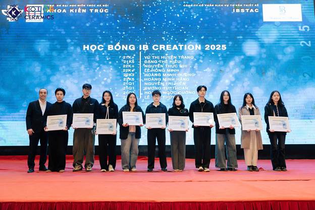 Trong khuôn khổ chương trình, Kolor Ceramics đã trực tiếp trao tặng các suất học bổng cho những sinh viên có thành tích nổi bật, như một sự động viên kịp thời và thiết thực đối với những nỗ lực không ngừng trong quá trình học tập và sáng tạo. Đây cũng là minh chứng rõ nét cho sự gắn kết giữa doanh nghiệp và môi trường đào tạo chuyên ngành kiến trúc.