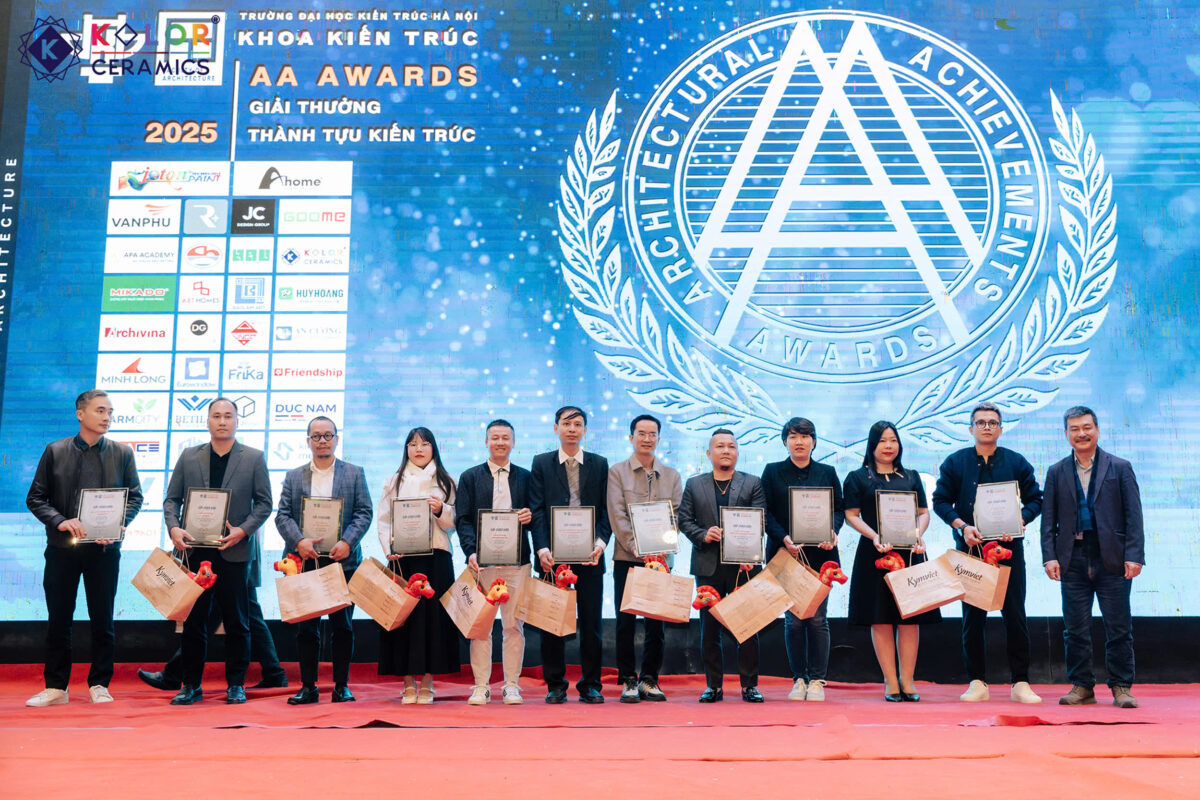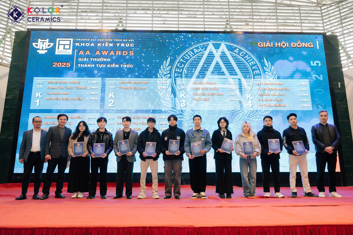 Vừa qua, Khoa Kiến trúc – Trường Đại học Kiến trúc Hà Nội đã tổ chức thành công AA Awards 2025 – giải thưởng thường niên nhằm tôn vinh các đồ án sinh viên tiêu biểu, giàu tính sáng tạo và giá trị học thuật. Chương trình năm nay ghi dấu ấn với sự tham gia của Kolor Ceramics – đơn vị cung cấp gạch ốp lát nhập khẩu châu Âu uy tín, thể hiện sự quan tâm và trách nhiệm trong việc đồng hành cùng công tác đào tạo nguồn nhân lực kiến trúc tương lai.
